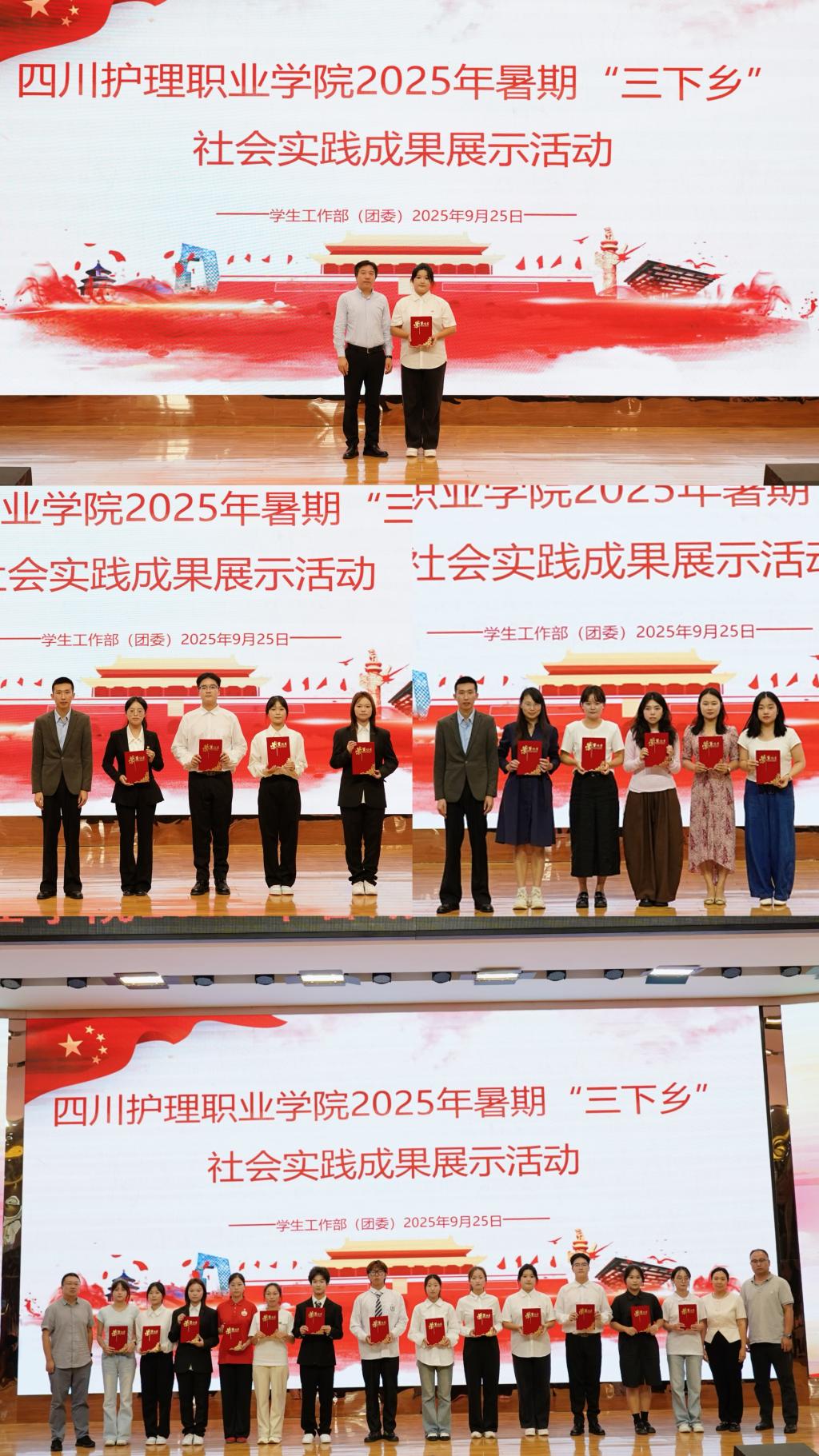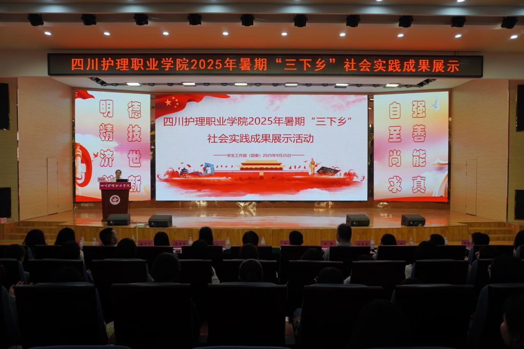 9月25日下午,学院在德阳校区学术报告厅举办2025年暑期“三下乡”社会实践成果展示活动。党委副书记彭博文出席活动,学生工作部(团委)负责人、各系党总支书记、团总支书记、实践团队师生代表及150余名同学参加活动。