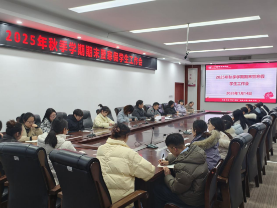 会上,招生就业处对2026届就业和招生工作进行了安排部署。学生工作部对2025年学生工作取得的成绩进行了总结,分析了存在的问题,提出了下一步的对策建议;并结合秋季学期期末及假期安排,围绕放假前、寒假中、开学前关键环节,聚焦学生安全、教室宿舍检查、离校登记、实习生管理、活动开展等工作做了安排部署。