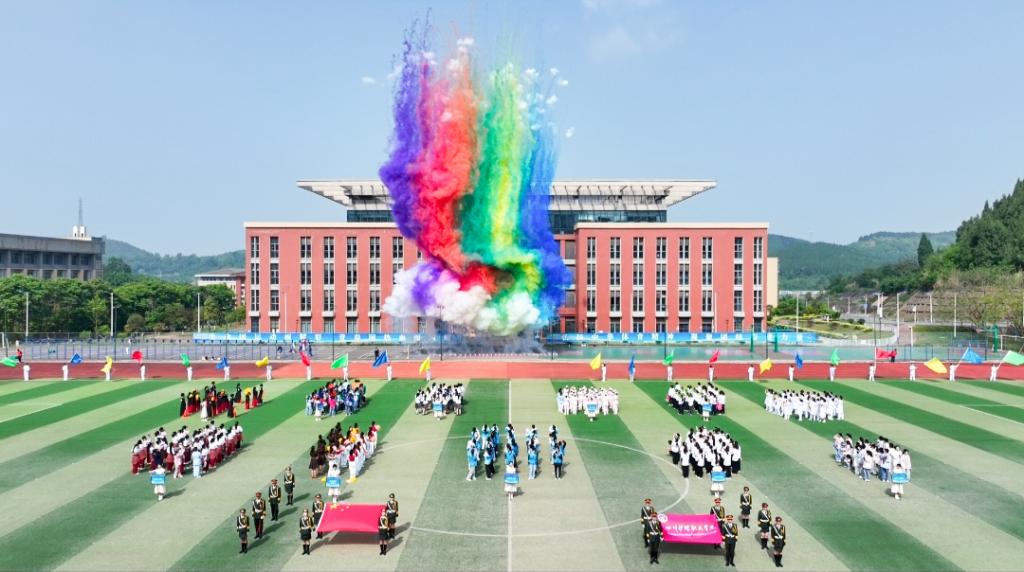 4月23日上午,我校2026年春季田径运动会开幕式在德阳、成都校区以线下线上同步直播形式开展。学校党委副书记、院长姚永萍,副院长张筱烽出席开幕式,相关职能部门负责人、全体师生及部分家长共计1.2万余人通过线下参与、线上收看方式参加活动。开幕式由党委副书记周昌华主持。