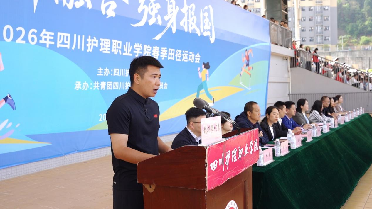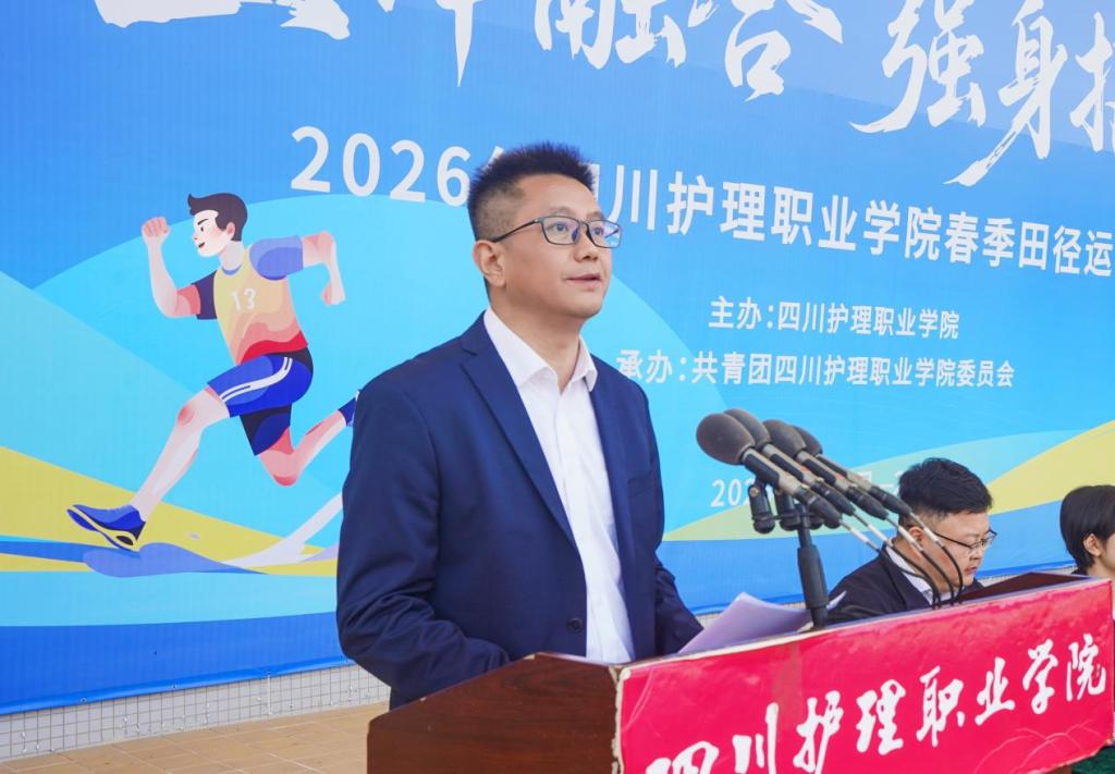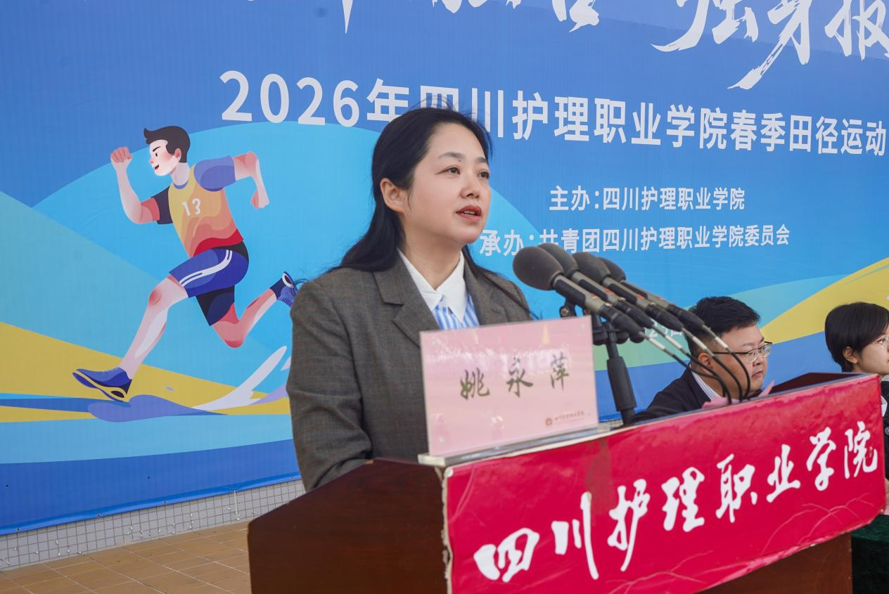 姚永萍在致辞中对本届运动会的召开表示衷心祝贺,向全体运动员、裁判员致以亲切问候,向筹备赛事的全体工作人员表示诚挚感谢。她结合赛事对同学们提出三点希望:一是以体强魂,在“医体融合”中筑牢健康中国根基;二是以体育人,在“健康第一”理念下涵养医者仁心;三是以体报国,在“身上有汗、眼里有光”的奋斗中担当健康重任。她号召大家树立“健康第一、医体融合”理念,强健体魄、凝聚力量,助力学校“新双高”建设与升本入规,为实现中华民族伟大复兴的中国梦贡献青春力量。