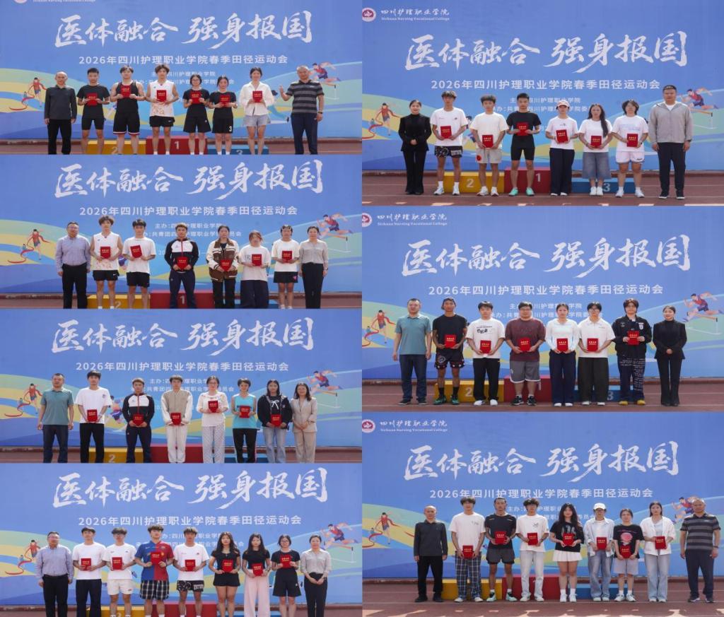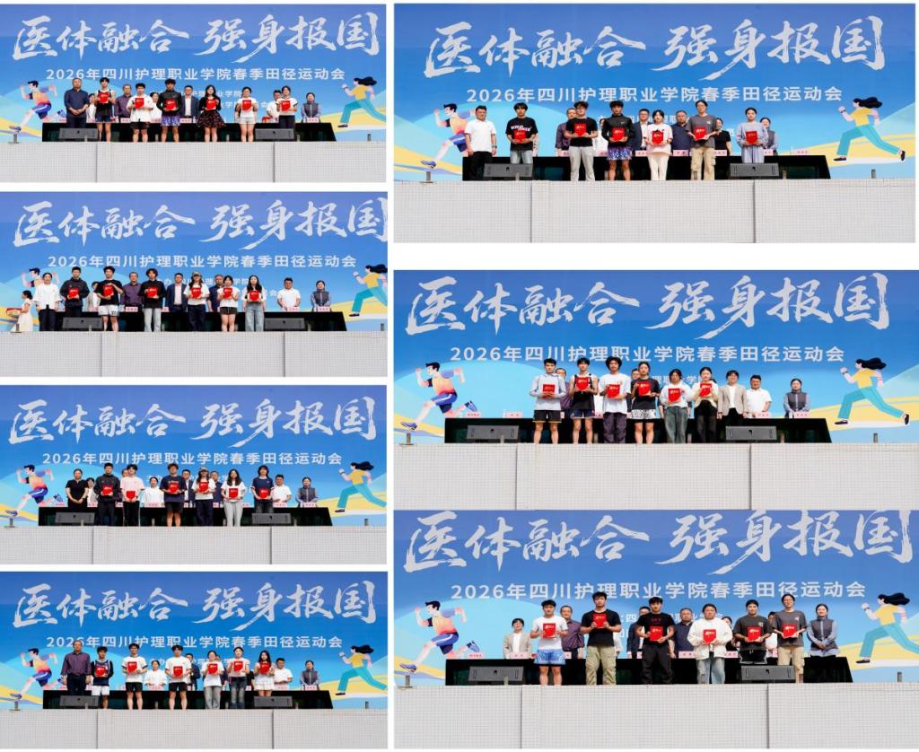 本届运动会历时两天。赛场上,运动健儿们在短跑、长跑、接力、跳高、铅球等项目中全力冲刺、顽强拼搏,充分展现了川护学子医体融合、知行合一的专业素养与昂扬向上、团结奋进的精神风貌。两校区共决出团体一等奖5个、二等奖9个、三等奖12个及个人奖308个。