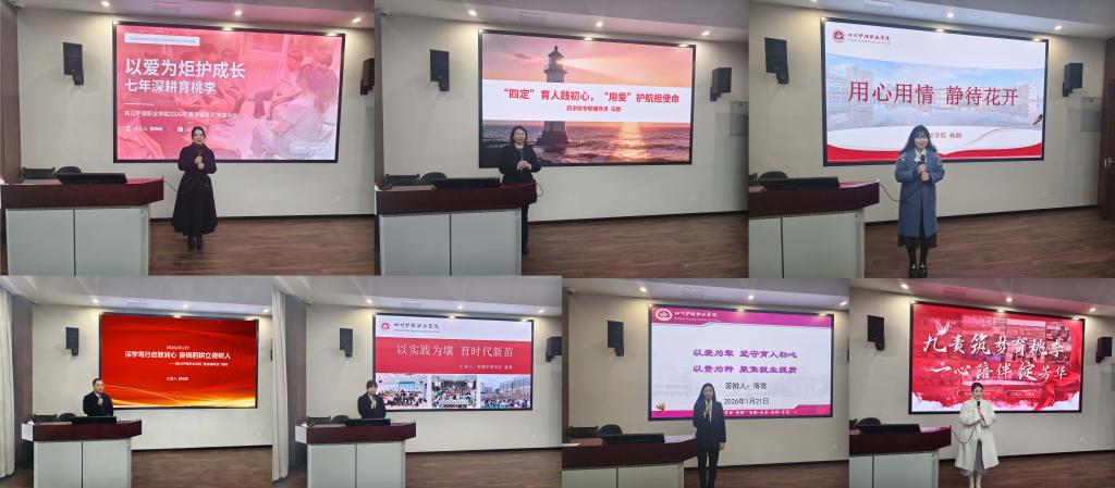 为加强辅导员队伍职业化、专业化建设,选树辅导员先进典型,发挥榜样示范引领作用,1月21日,我校在成都校区举行了“最美辅导员”评选答辩会,学校副院长陈劲松出席。学生工作部(团委)负责人、各二级学院党总支书记和全体专职辅导员参加活动。答辩会邀请了第八届全国辅导员素质能力大赛一等奖获得者王丽英,四川省第八届辅导员素质能力大赛一等奖获得者卓飞和四川省第九届辅导员素质能力大赛一等奖获得者郭鹏担任评委。