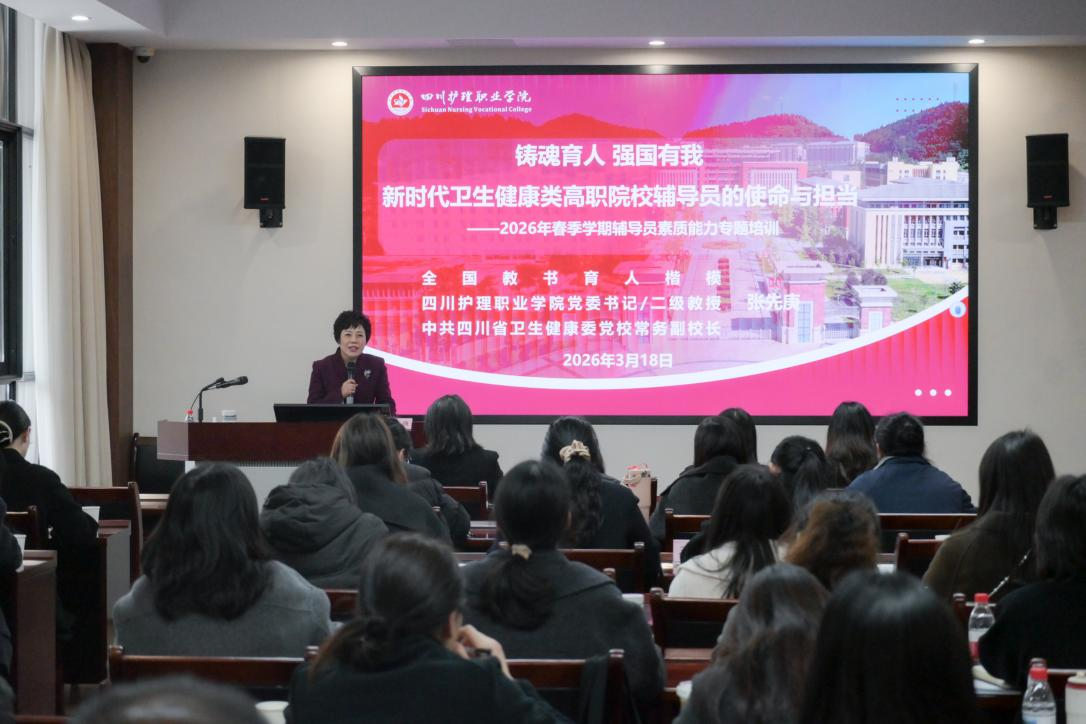为进一步加强辅导员队伍建设,持续提升辅导员核心素养与实务技能,推进辅导员队伍专业化、职业化、专家化发展,3月18日至19日,学校在中共四川省卫生健康委党校开展2026年春季学期辅导员素质能力提升专题培训,全体专职辅导员60余人参训。